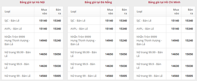 Giá vàng tại Công ty Cổ phần Đầu tư vàng Phú Quý: