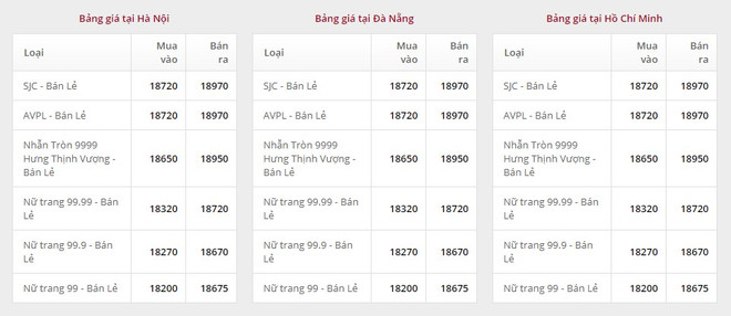 Giá vàng tại Công ty Cổ phần Đầu tư vàng Phú Quý: