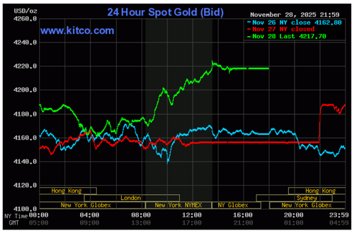 Biểu đồ giá vàng thế giới ngày 29/11. (Ảnh: kitco.com)