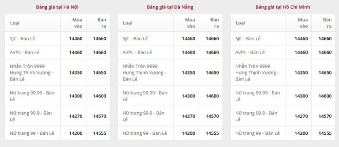 Giá vàng tại Công ty Cổ phần Đầu tư vàng Phú Quý: