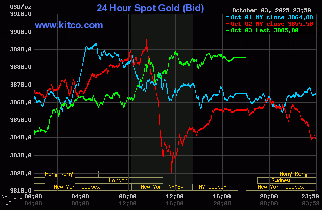 Tính đến 9 giờ sáng 5/10 (giờ Việt Nam), giá vàng thế giới tăng 29,5 USD so chốt phiên trước đó lên mức 3.885 USD/ounce.