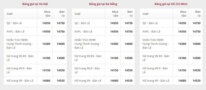 Giá vàng tại Công ty Cổ phần Đầu tư vàng Phú Quý: