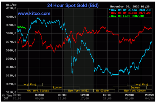 Biểu đồ giá vàng thế giới ngày 6/11. (Ảnh: kitco.com)