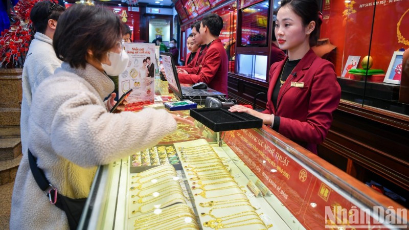 Trong khi đó, giá vàng miếng DOJI tại Hà Nội và Thành phố Hồ Chí Minh mua vào ở mức 145,8 triệu đồng/lượng và bán ra 147,8 triệu đồng/lượng, tăng 300 nghìn đồng mỗi lượng ở cả chiều mua và chiều bán so chốt phiên hôm trước.