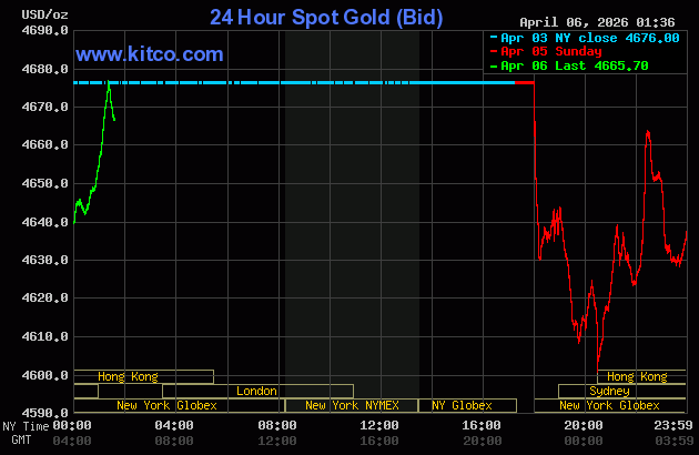 Biểu đồ giá vàng thế giới ngày 6/4. (Ảnh: kitco.com)