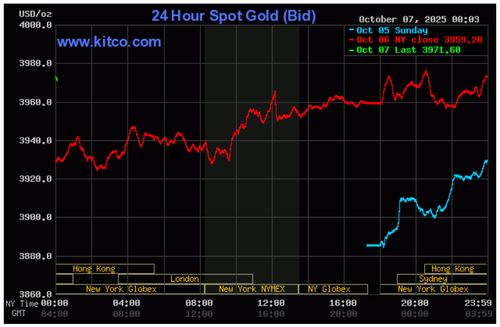 Biểu đồ giá vàng thế giới ngày 7/10. (Ảnh: kitco.com)