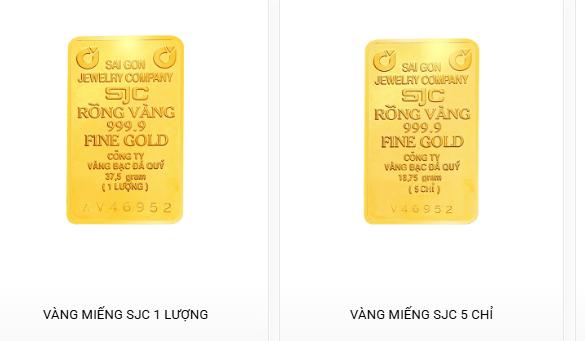 Giá vàng niêm yết lúc 8 giờ 45 phút tại web SJC. Ảnh chụp màn hình