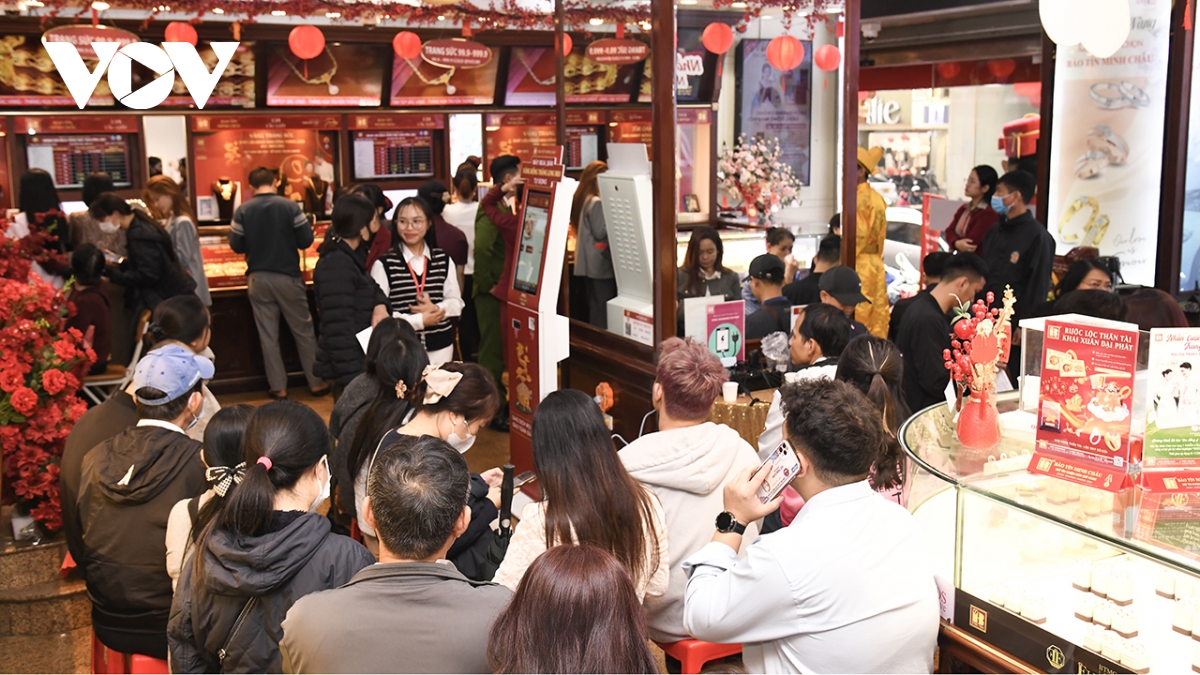 Thực tế giao dịch trên thị trường cũng cho thấy nhu cầu mua vàng trong nước vẫn rất lớn. Tại nhiều cửa hàng vàng, khách hàng tiếp tục xếp hàng từ sáng sớm để chờ mua vàng, thậm chí đông hơn so với ngày thường.