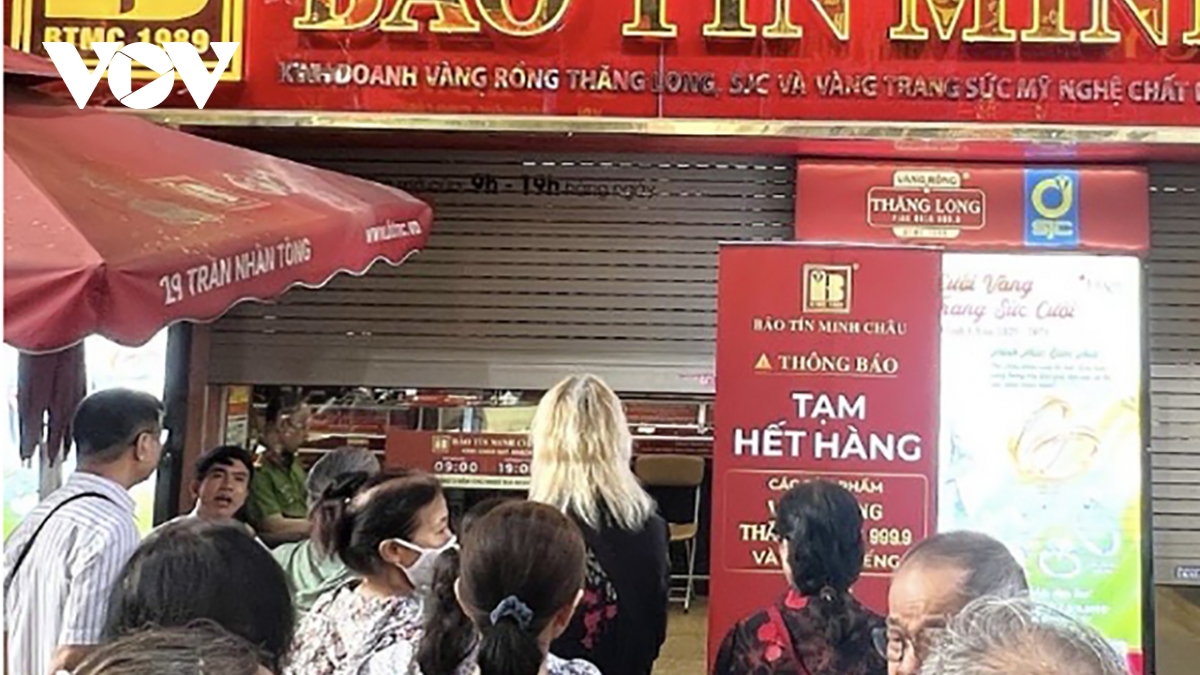 Gần 10h sáng, Bảo Tín Minh Châu treo biển “hết hàng”.