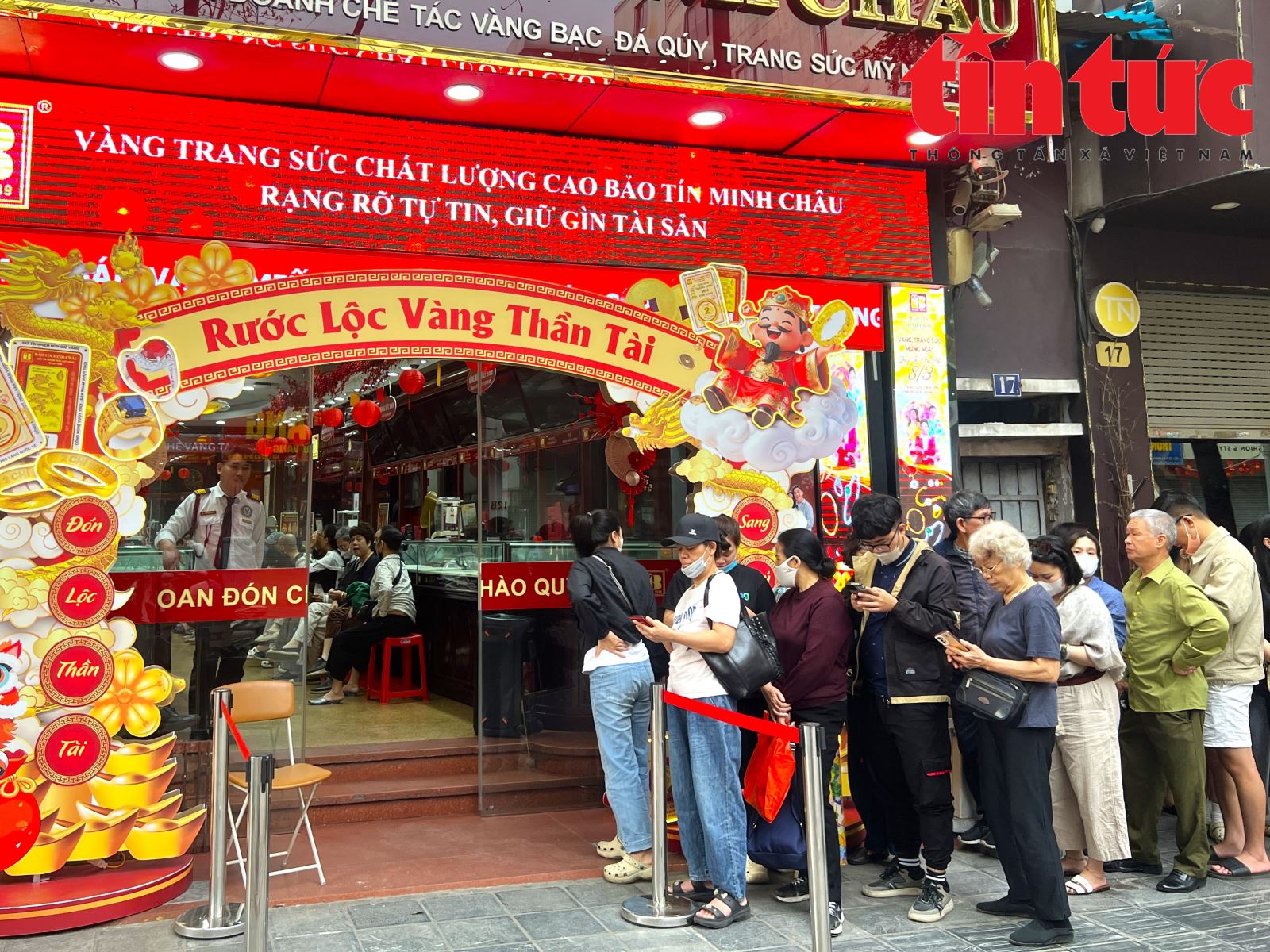 Ghi nhận tại "phố vàng" Trần Nhân Tông và đường Cầu Giấy (Hà Nội), nơi tập trung các thương hiệu vàng nổi tiếng, ngay từ sáng sớm đã có người dân đến xếp hàng để lấy số vào giao dịch. Theo đại diện cửa hàng vàng, từ sau Tết đến nay, nhu cầu mua vàng của người dân tăng cao, nhất là trong ngày vía Thần Tài và sau khi có thông tin xung đột bùng phát ở Trung Đông.