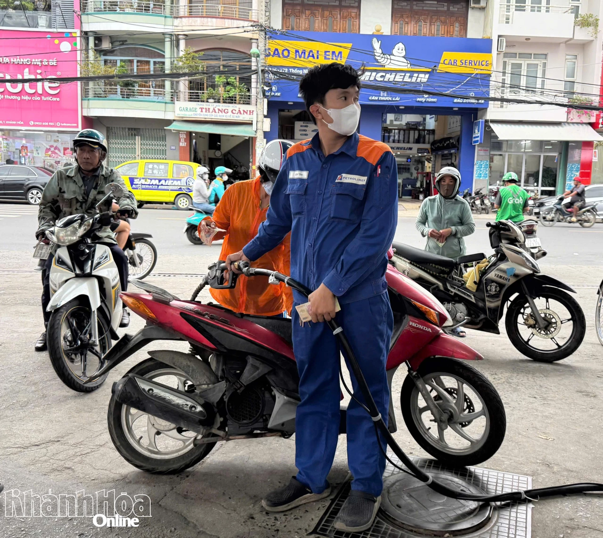 Người dân đổ xăng tại cây xăng dầu phường Tây Nha Trang.