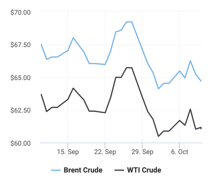 Giá xăng dầu hôm nay 10/10 trên thị trường thế giới tiếp tục giảm mạnh, theo số liệu từ các sàn giao dịch dầu thô như Trading Economics và Oilprice.