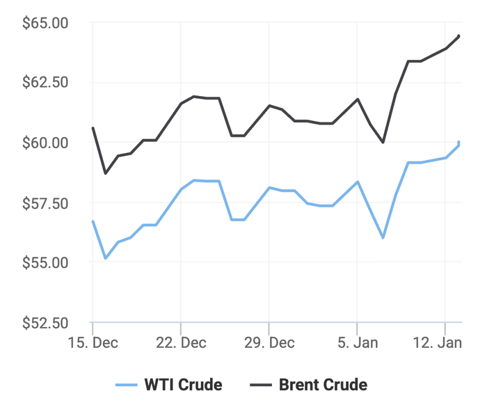 Giá xăng dầu hôm nay 13/1 trên thị trường thế giới tiếp tục tăng, theo số liệu từ các sàn giao dịch dầu thô như Trading Economics và Oilprice.