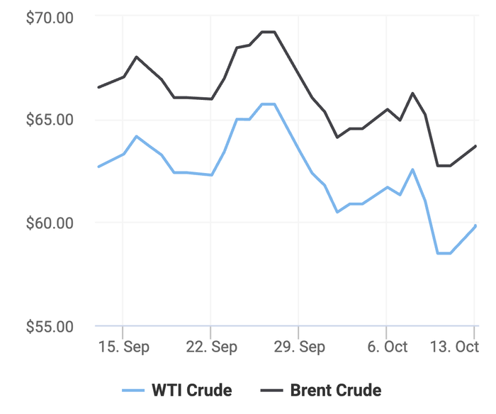 Giá xăng dầu hôm nay 13/10 trên thị trường thế giới tiếp tục giảm rất mạnh, theo số liệu từ các sàn giao dịch dầu thô như Trading Economics và Oilprice.