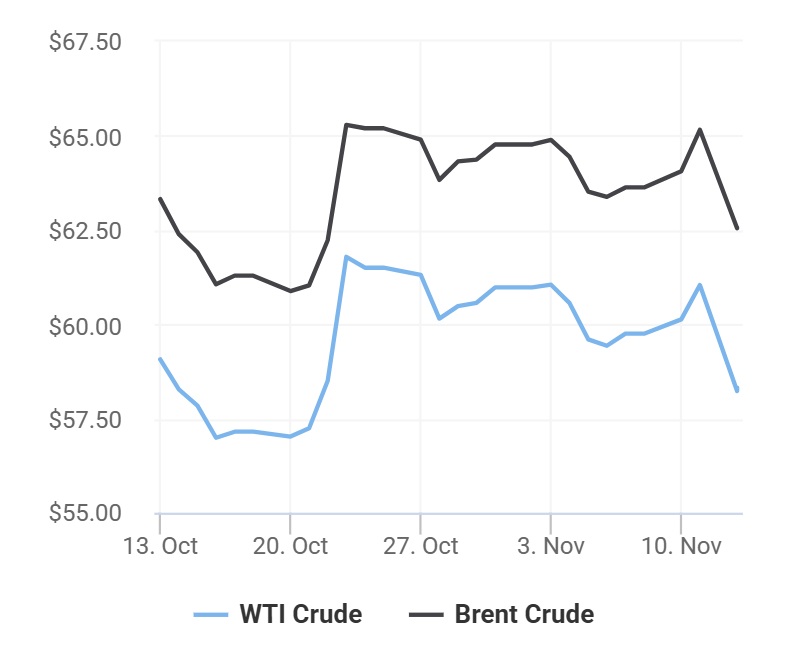 Thị trường chờ đợi báo cáo về dự trữ dầu thô tại Mỹ của Cơ quan Thông tin Năng lượng Mỹ (EIA) công bố ngày 13/11 (theo giờ địa phương).