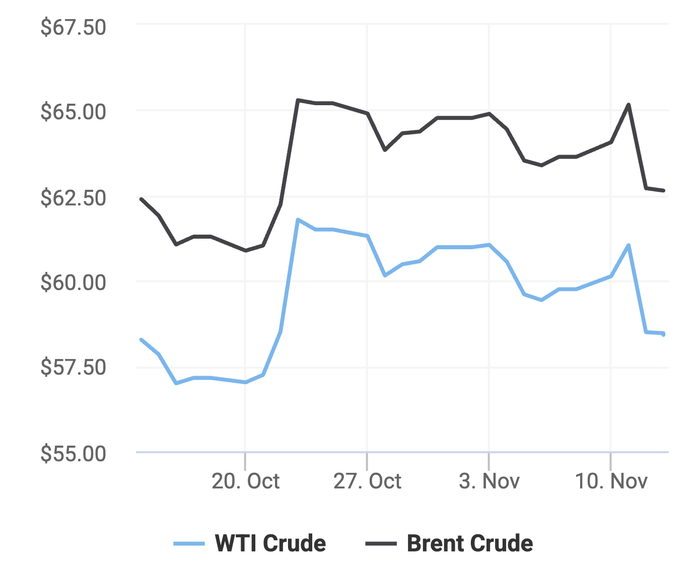 Giá xăng dầu hôm nay 13/11 trên thị trường giảm mạnh, theo số liệu từ các sàn giao dịch dầu thô như Trading Economics và Oilprice.
