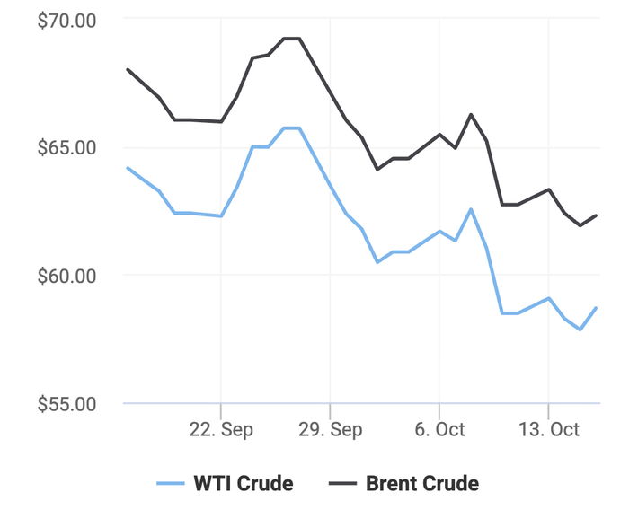 Giá xăng dầu hôm nay 16/10 trên thị trường thế giới trồi sụt khó lường, theo số liệu từ các sàn giao dịch dầu thô như Trading Economics và Oilprice.