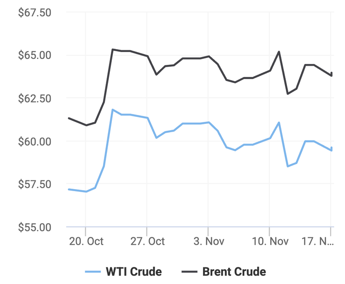Giá xăng dầu hôm nay 17/11 trên thị trường giảm mạnh, theo số liệu từ các sàn giao dịch dầu thô như Trading Economics và Oilprice.