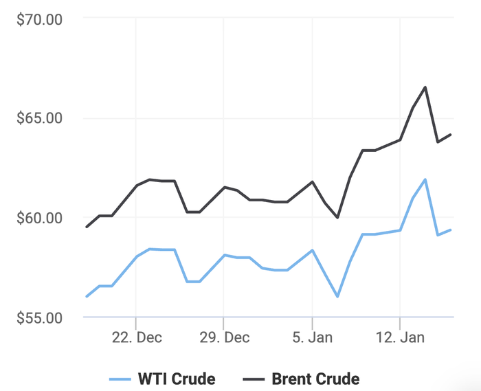 Giá xăng dầu hôm nay 18/1 trên thị trường thế giới tăng nhẹ, theo số liệu từ các sàn giao dịch dầu thô như Trading Economics và Oilprice.