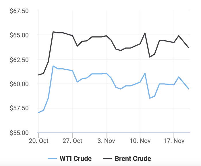 Giá xăng dầu hôm nay 20/11 trên thị trường bất ngờ lao dốc, giảm mạnh, theo số liệu từ các sàn giao dịch dầu thô như Trading Economics và Oilprice.