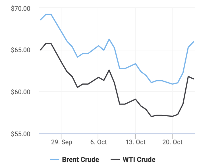 Giá xăng dầu hôm nay 25/10 trên thị trường thế giới lao dốc giảm sau đợt tăng trước đó, theo số liệu từ các sàn giao dịch dầu thô như Trading Economics và Oilprice.