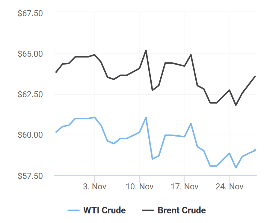 Mỹ ghi nhận lượng mua xăng dầu giảm trong kỳ nghỉ Lễ Tạ ơn. Giá dầu thô cũng được hỗ trợ bởi kỳ vọng về khả năng Cục Dự trữ Liên bang Mỹ (Fed) sẽ cắt giảm lãi suất vào tháng 12. Lãi suất thấp sẽ kích thích tăng trưởng kinh tế và thúc đẩy nhu cầu tiêu thụ năng lượng.