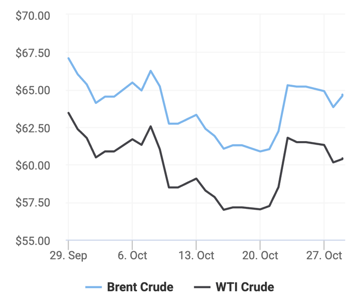 Giá xăng dầu hôm nay 29/10 trên thị trường thế giới bất ngờ lao dốc giảm cực mạnh, theo số liệu từ các sàn giao dịch dầu thô như Trading Economics và Oilprice.