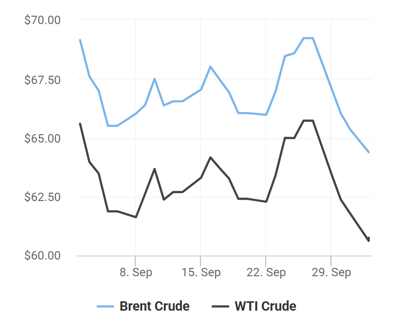 Trong sáng nay 3/10/2025, giá xăng dầu thế giới tăng nhưng đang hướng đến tuần giảm mạnh nhất kể từ cuối tháng 6 do thị trường kỳ vọng Tổ chức các nước xuất khẩu dầu mỏ và đồng minh (OPEC+) có thể tiếp tục tăng sản lượng bất chấp lo ngại về tình trạng dư cung.