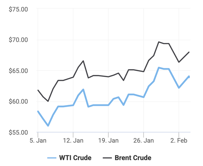 Giá xăng dầu hôm nay 4/2 trên thị trường thế giới tăng mạnh mạnh so với phiên giao dịch ngày hôm qua, theo số liệu từ các sàn giao dịch dầu thô như Trading Economics và Oilprice.