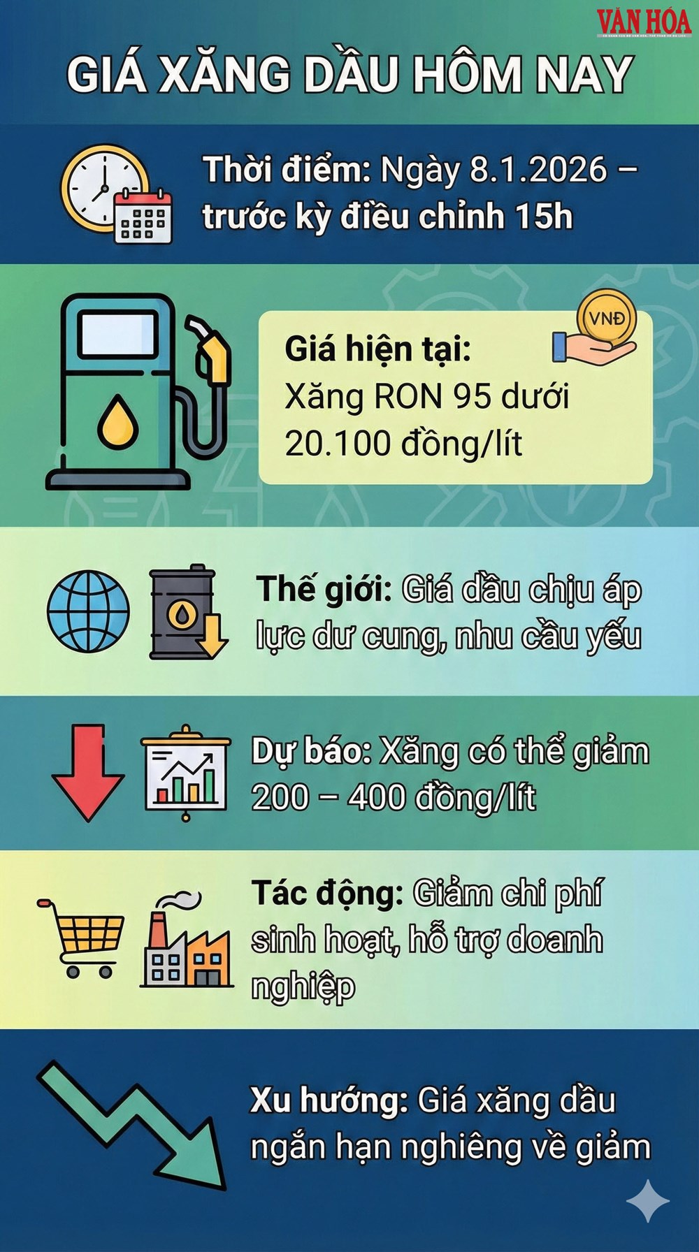 Kỳ điều hành lúc 15h ngày 8.1.2026 vì vậy được kỳ vọng sẽ mang đến tin tích cực cho người tiêu dùng, tiếp tục củng cố xu hướng giá xăng dầu thấp trong những ngày đầu năm.