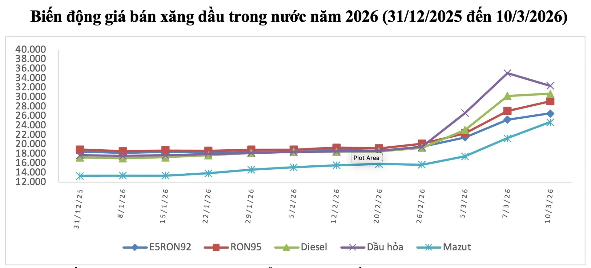 Bảng điều chỉnh giá xăng, dầu từ 23h45 ngày 10/3 (Đơn vị tính: Nghìn đồng/lít/kg):