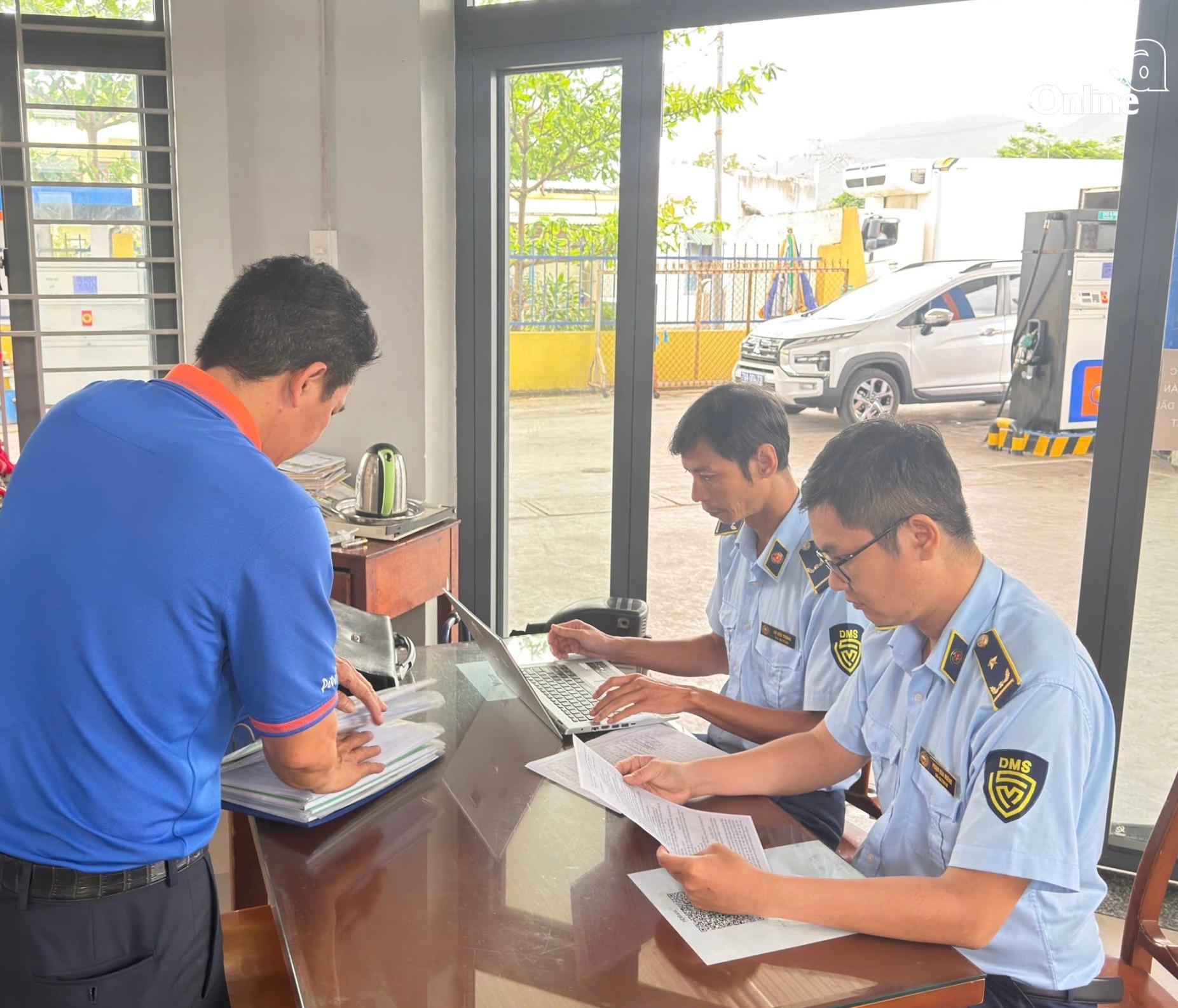 Đội Quản lý thị trường số 1 kiểm tra, giám sát tình hình kinh doanh của một cửa hàng xăng, dầu ở khu vực Nha Trang.