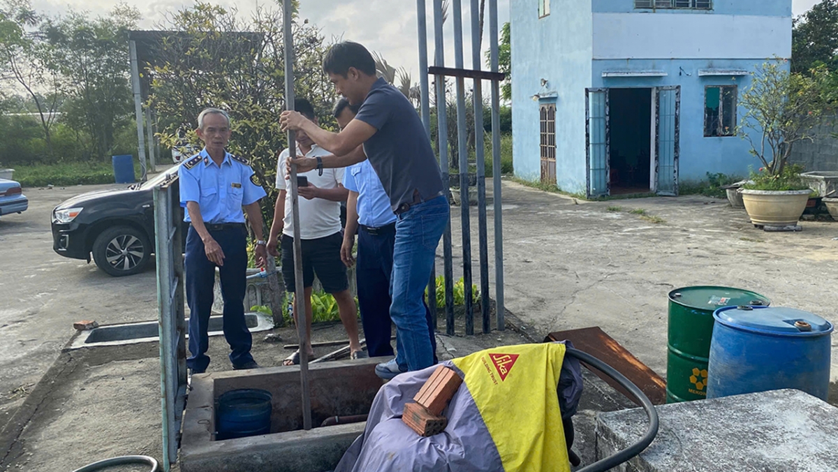 Lực lượng Quản lý thị trường kiểm tra bể chứa dầu của cơ sở kinh doanh xăng dầu