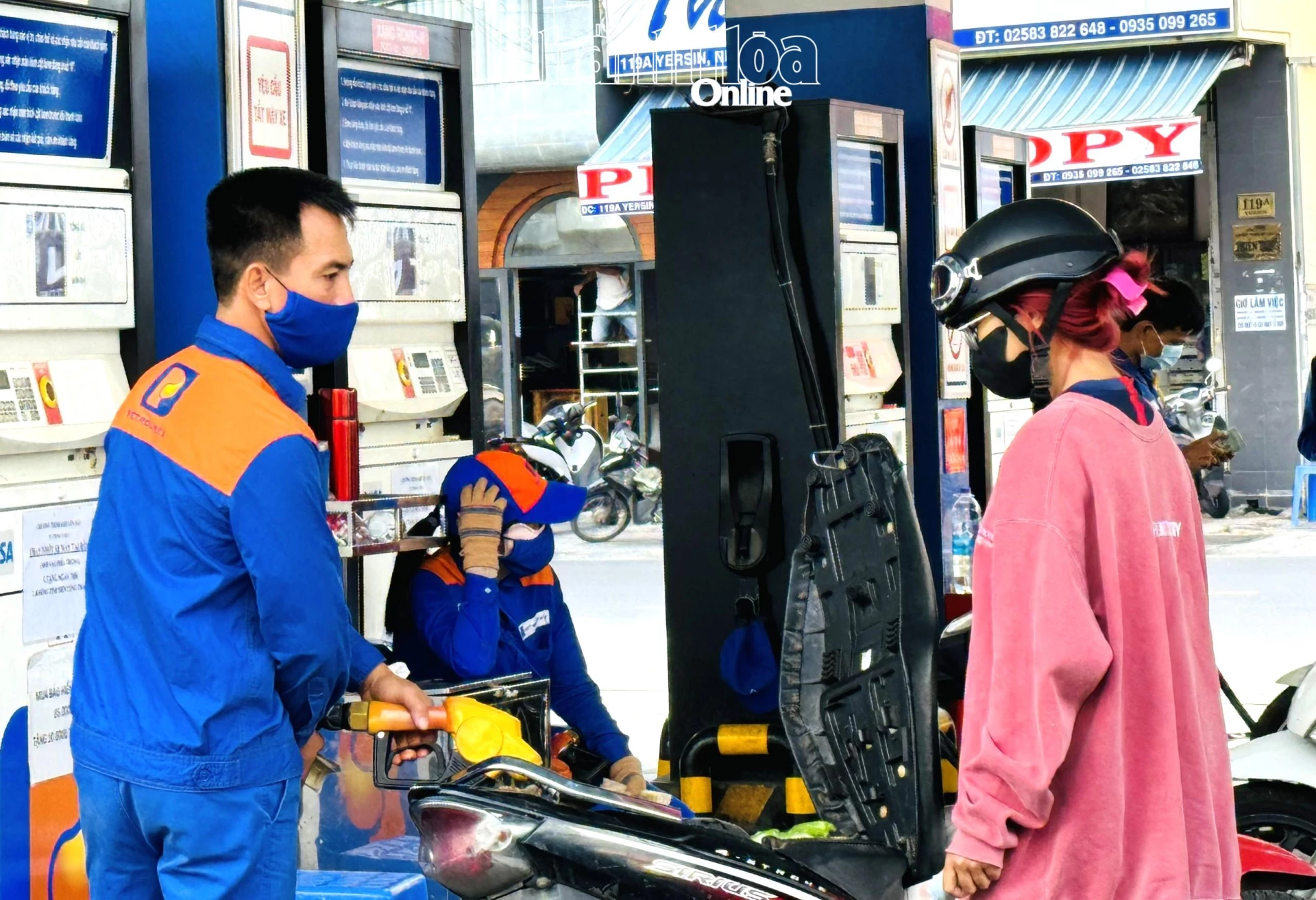 Người dân đổ xăng tại một cây xăng trên địa bàn Nha Trang