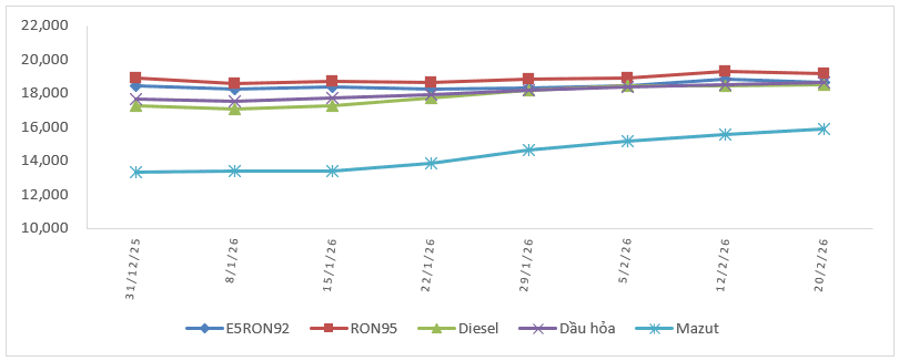 Chi tiết giá bán lẻ xăng dầu từ ngày 20/02/2026