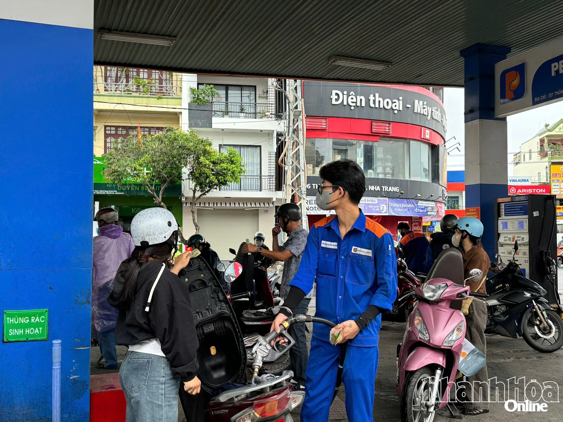 Người dân đổ xăng tại cây xăng phường Tây Nha Trang.