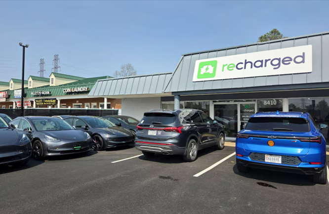 Bãi đỗ xe của đại lý ô tô Recharged, ở Richmond, Virginia, Mỹ. (Ảnh: Reuters)