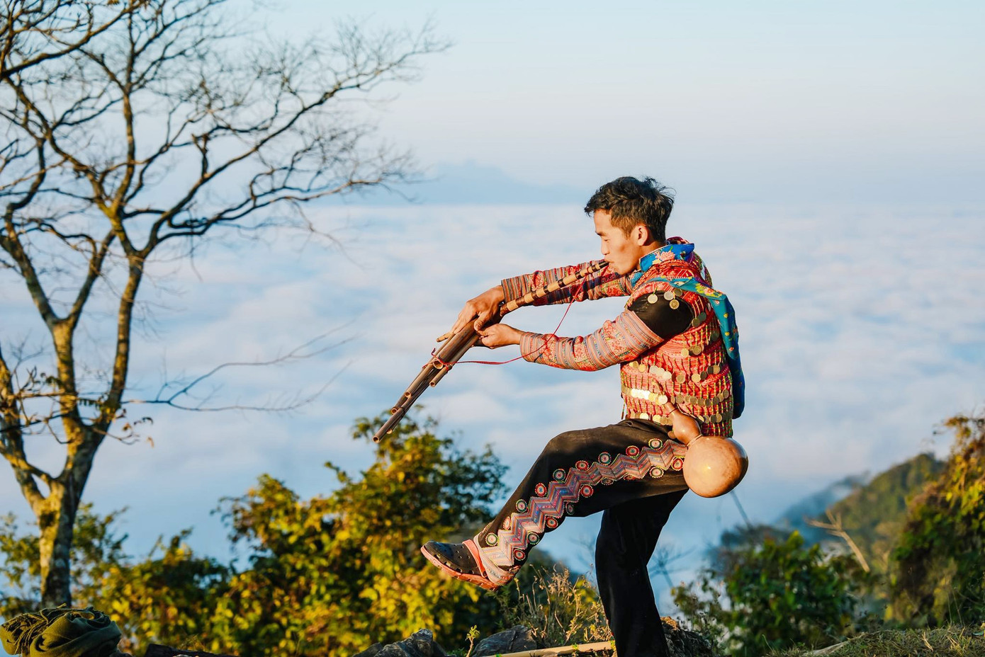 Giàng A La thổi kèn Mông trên "biển" mây.