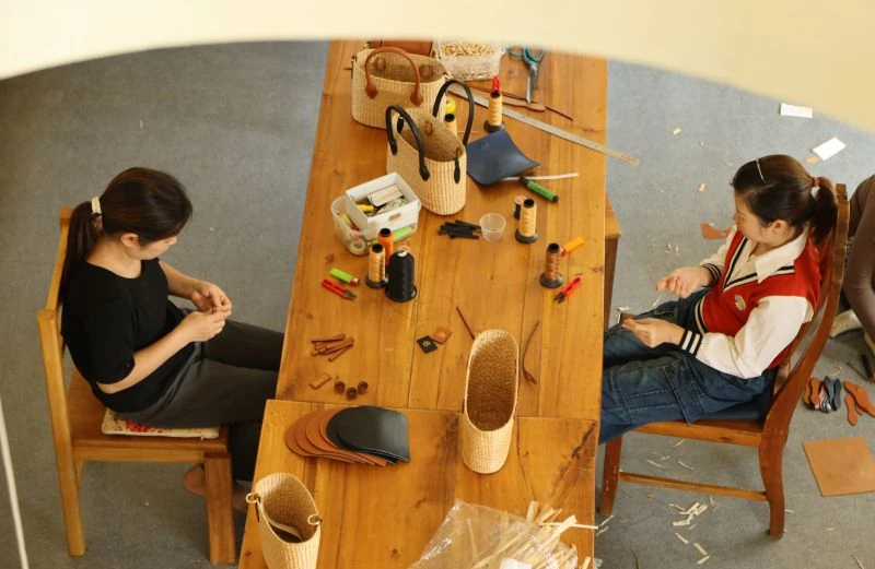 Điều khiến anh tâm đắc nhất là quá trình học hỏi hai chiều: anh chia sẻ về xu hướng, chất liệu, thiết kế; còn người thợ góp ý cách xoắn, cách đan, xử lý từng sợi sao cho khéo léo, tạo nên dấu ấn riêng cho mỗi sản phẩm. Với ông chủ trẻ này, đó không đơn thuần là lao động thủ công mà là sáng tạo của người nghệ nhân - sự kết hợp giữa kỹ thuật đan truyền thống và chuẩn mực thẩm mỹ hiện đại.
