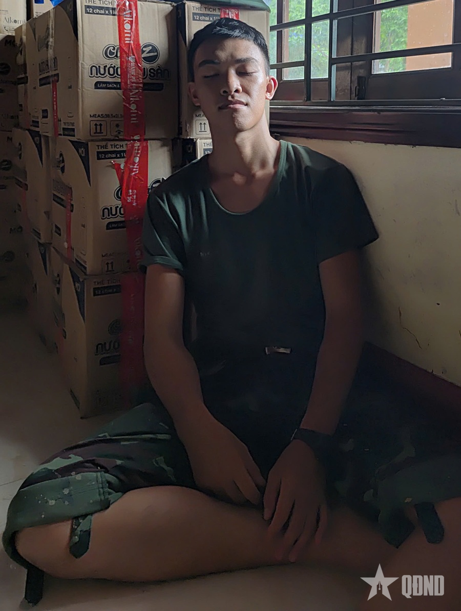 Sau nhiều giờ lao động liên tục dưới nắng nóng gay gắt và mùi bùn, rác thải ngâm lâu ngày, nước lũ bốc lên, bộ đội tranh thủ ăn cơm và ngủ trưa.