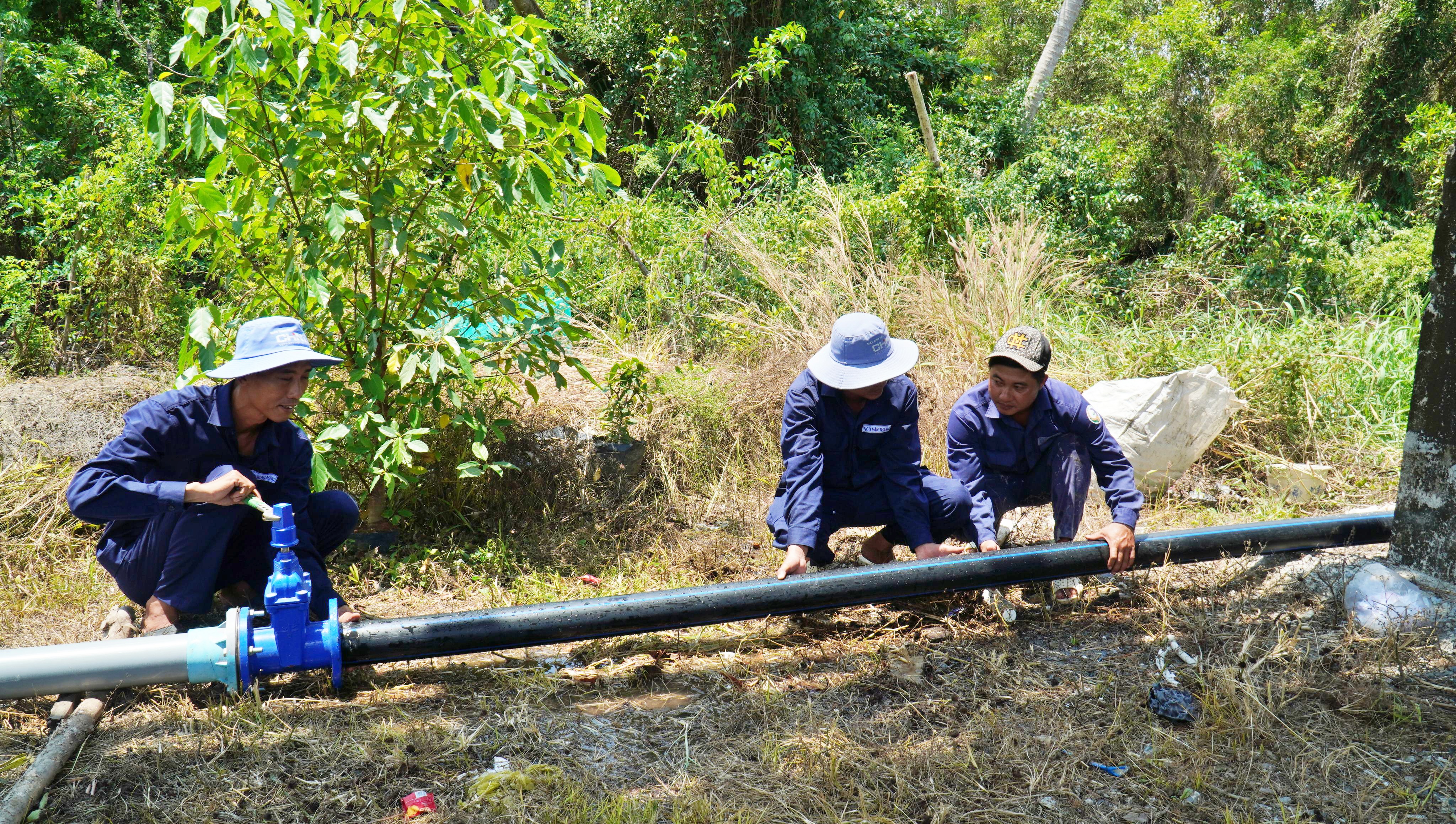 Trung tâm Nước sạch và Vệ sinh môi trường nông thôn tỉnh Cà Mau dẫn đường ống nước về vùng nông thôn trên địa bàn xã Biển Bạch.