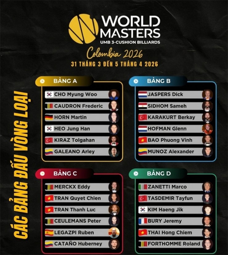 Vừa qua, thông tin về việc giải carom 3 băng tầm cỡ thế giới World Masters 2026 bị hủy đã làm xôn xao cộng đồng bi-a tại Việt Nam cũng như quốc tế. Trước đó, kể từ khi ra thông báo, hệ thống World Masters 2026 với chặng đầu tiên dự kiến diễn ra từ ngày 31/3 đến 5/4 tại Bogota (Colombia) đã gây “sốt”.
