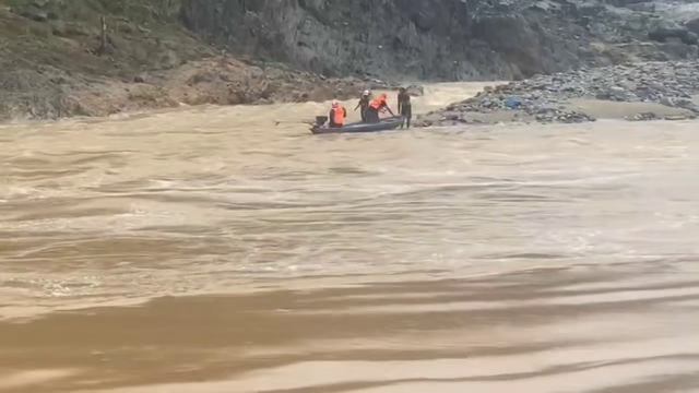 Cắt dòng lũ dữ, tiếp cận 2 người dân đưa vào bờ an toàn.