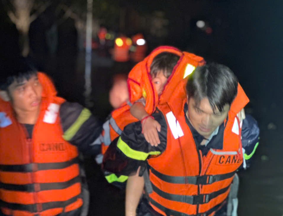 Trong điều kiện mưa lớn, nước dâng nhanh, chảy xiết và ngập sâu gần 2m, các cán bộ, chiến sĩ đã nỗ lực vượt khó để đưa toàn bộ 127 người đến nơi an toàn.