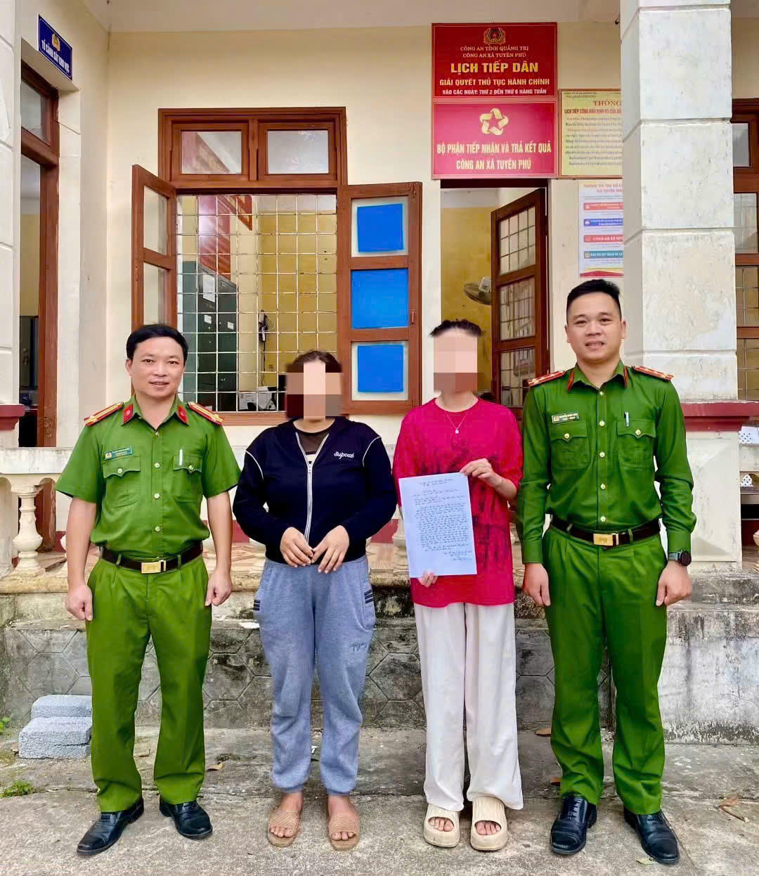 Công an xã Tuyên Phú tiếp nhận thư cảm ơn từ Đ.T.V sau hành trình giải cứu đầy kịch tính.
