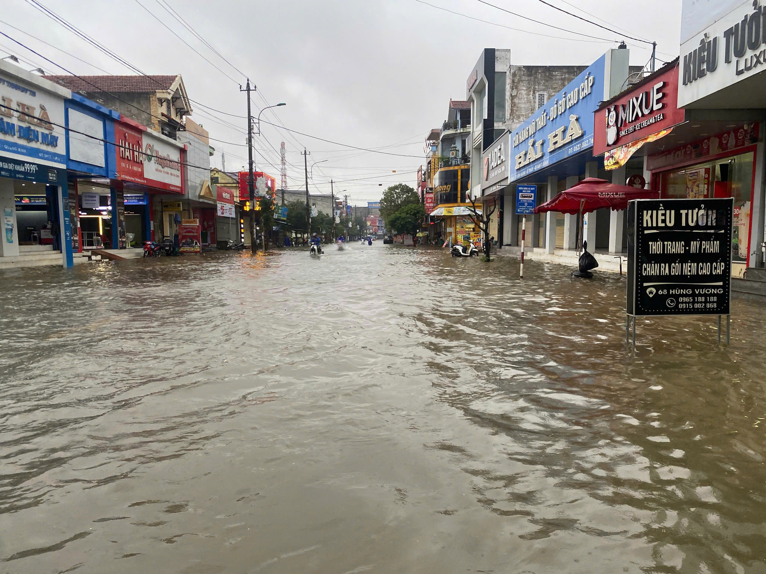 Hiện tình hình mưa lũ ở Quảng Trị diễn biến phức tạp, nước sông dâng cao, nhiều nơi ngập sâu trong nước.