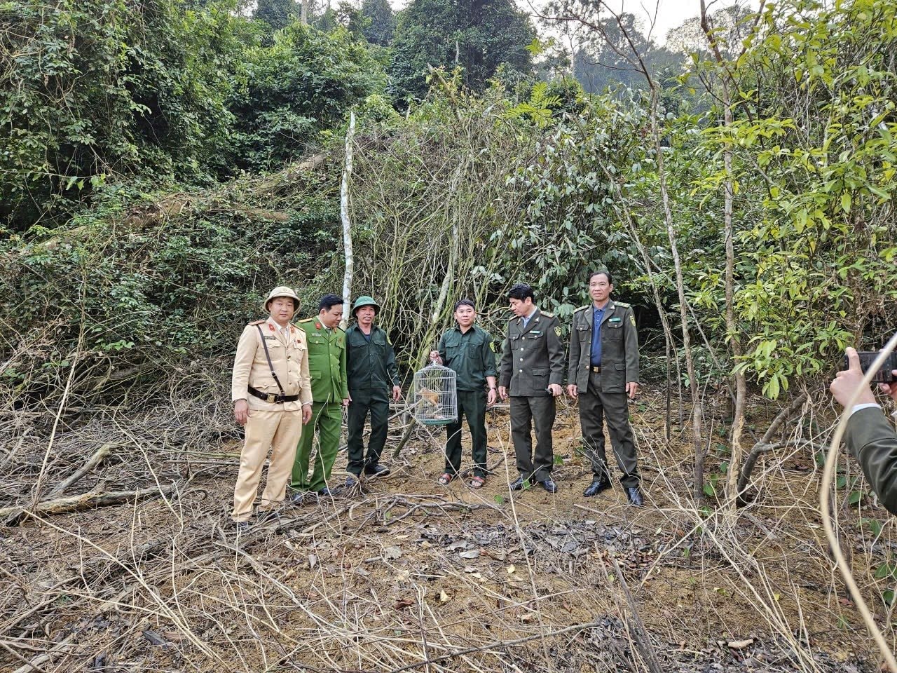 Tại đây, Đại úy Lê Xuân Linh cùng tổ công tác đã tiếp nhận cá thể Cu li từ tay anh Chiến. Ngay sau đó, lực lượng CSGT đã nhanh chóng phối hợp với Công an xã Xuân Thái và phía Vườn quốc gia Bến En để thực hiện các thủ tục bàn giao theo đúng quy định.