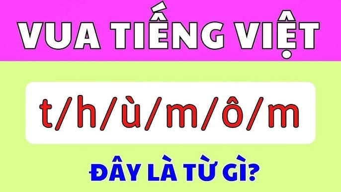 Các chương trình đố vui kiến thức luôn mang lại sự hấp dẫn đặc biệt, trong đó có các thử thách về ngôn ngữ. Một câu đố ghép chữ yêu cầu người chơi sắp xếp các chữ cái và dấu cho trước là t/h/ù/m/ô/m để tạo thành một từ có nghĩa trong tiếng Việt.