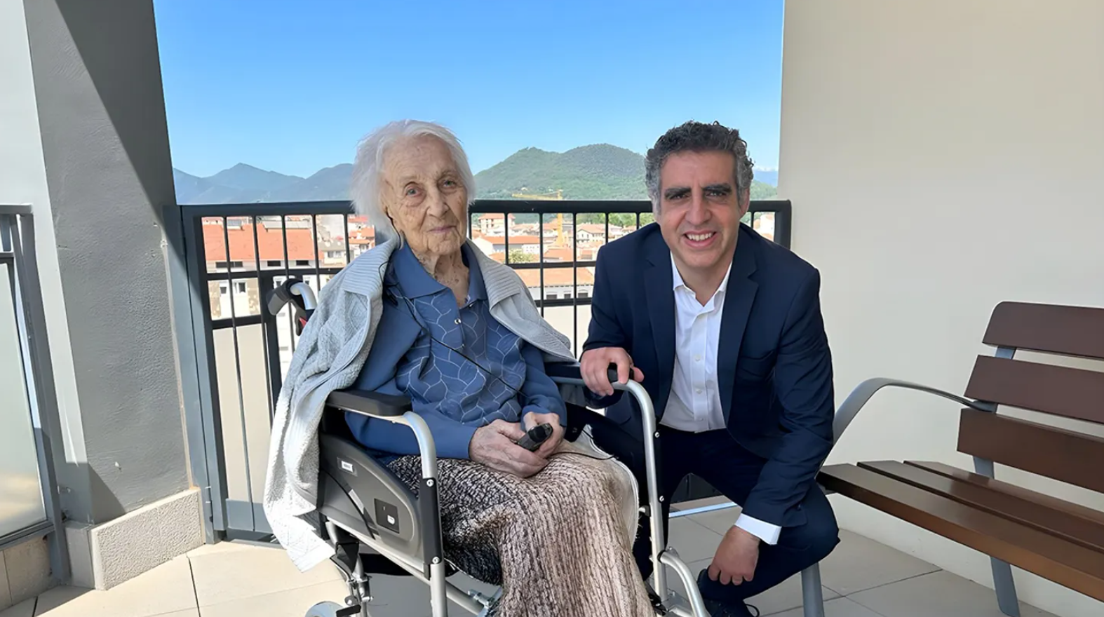 Cụ María Branyas chụp cùng Tiến sĩ Manel Esteller, người đứng đầu nhóm nghiên cứu tại Viện nghiên cứu bệnh bạch cầu Josep Carreras. Ảnh: Fox News