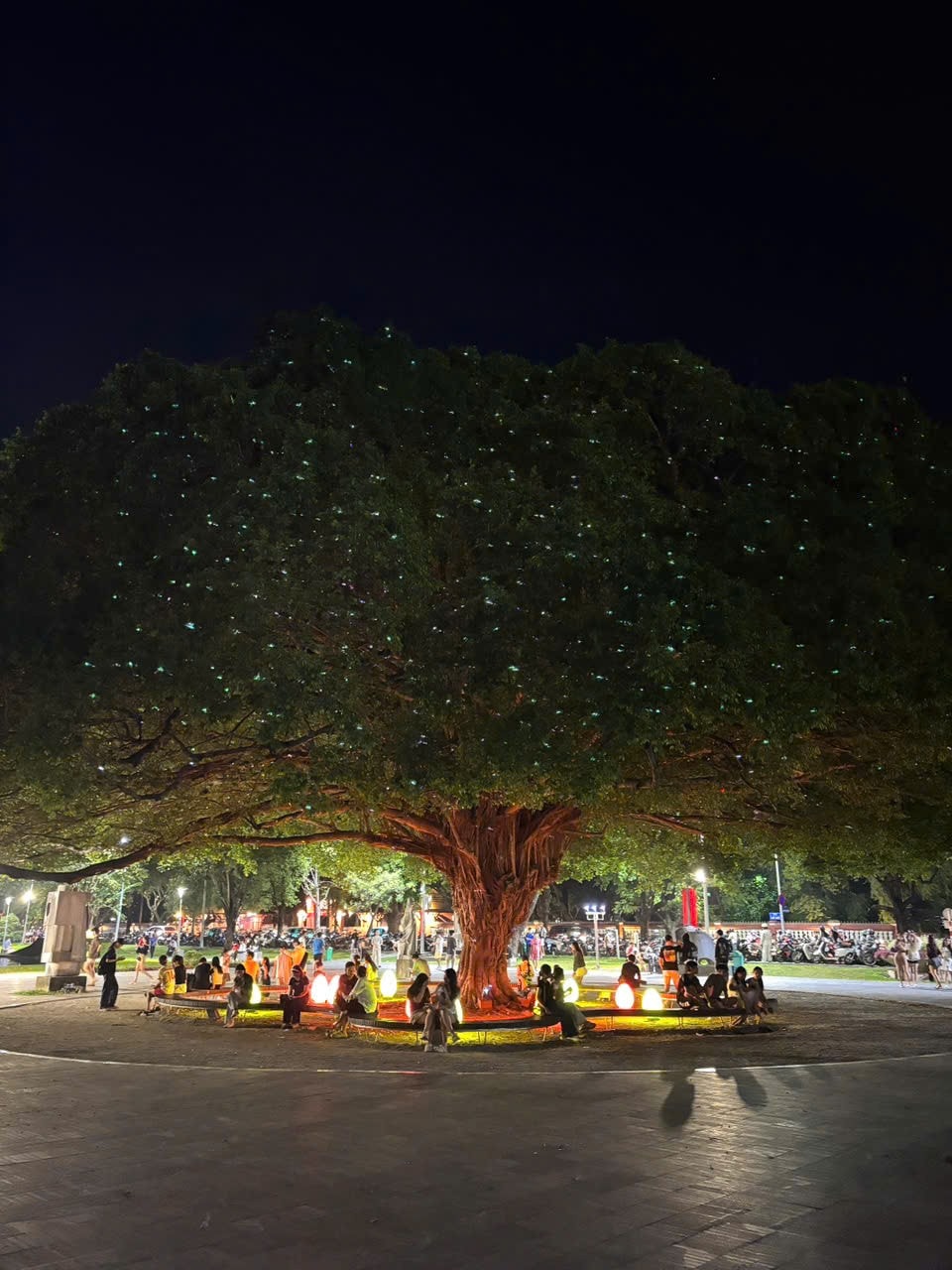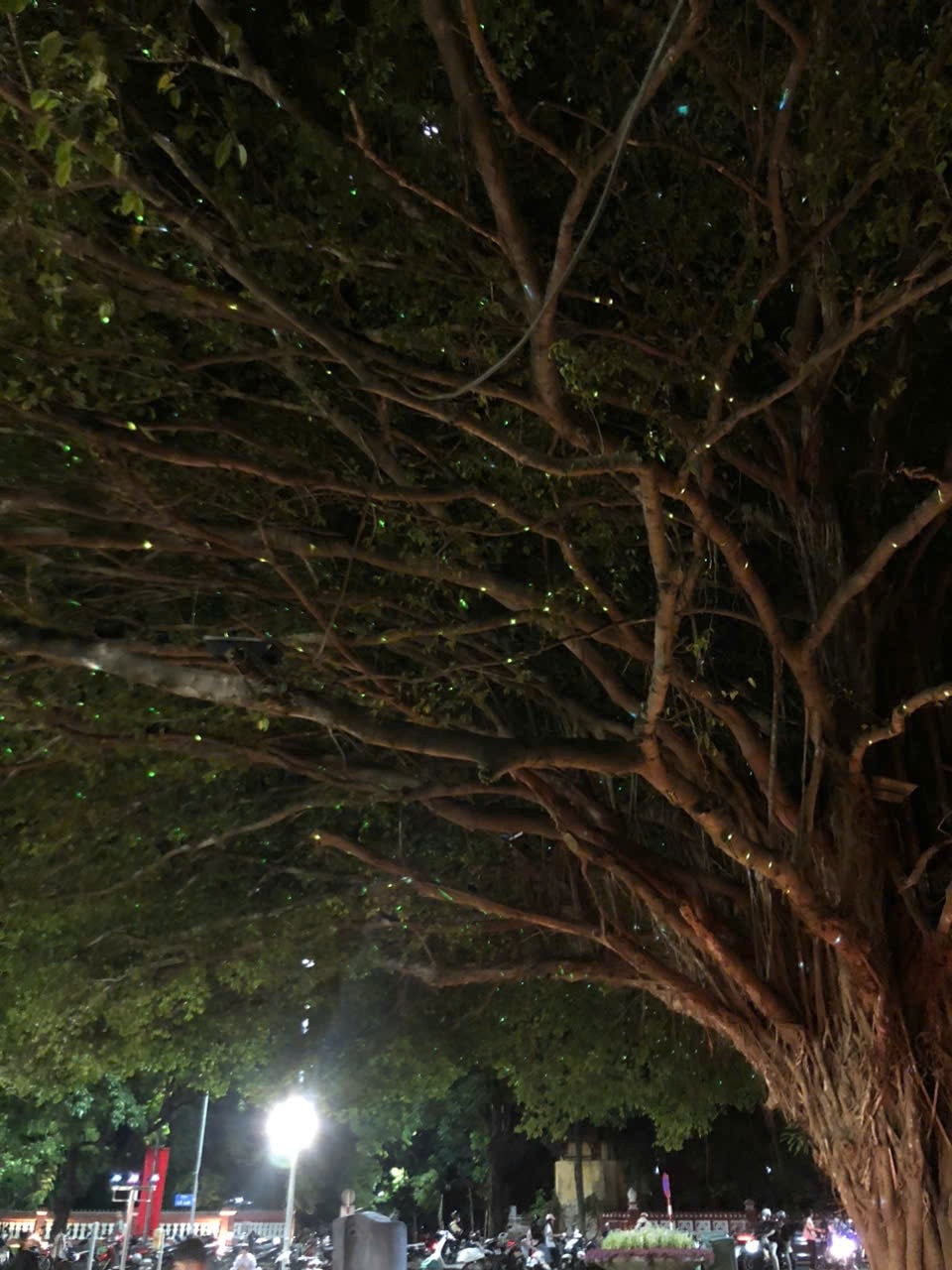 Một lưu ý nhỏ là khi nhìn từ xa, hiệu ứng ánh sáng có thể không rõ rệt. Đừng vội thất vọng, hãy tiến lại gần hơn để cảm nhận trọn vẹn những đốm sáng "thơ thẩn" đang chạy khắp tán cây.